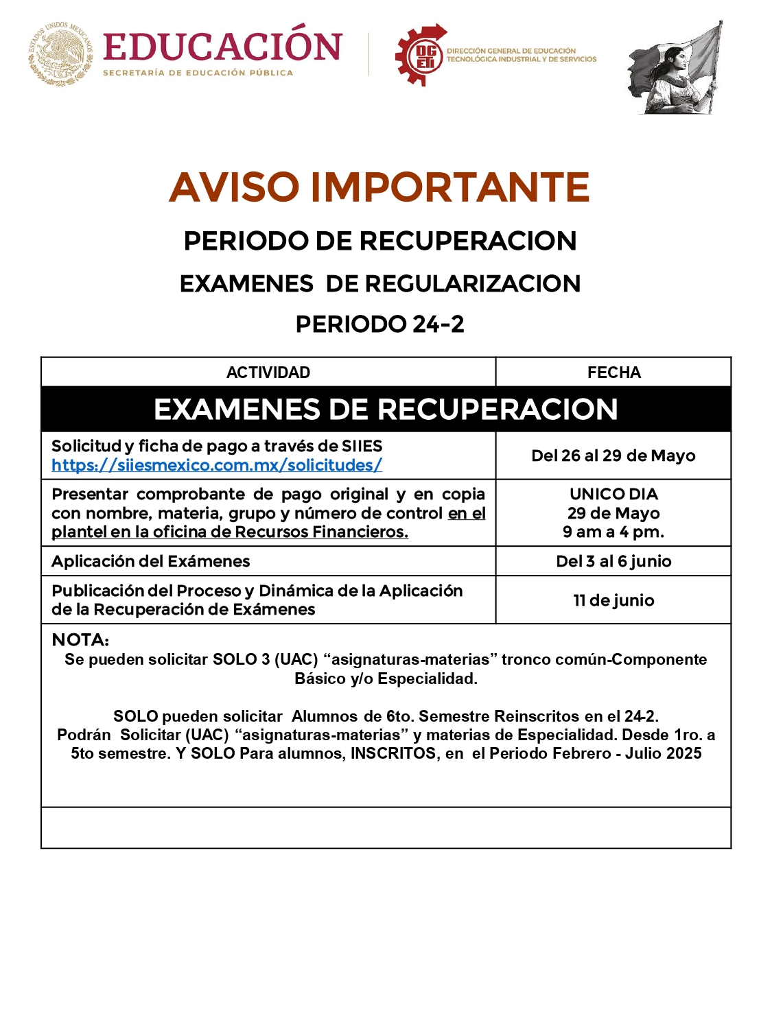 AVISO PERIODO RECUPERACION 6TOS 24-2